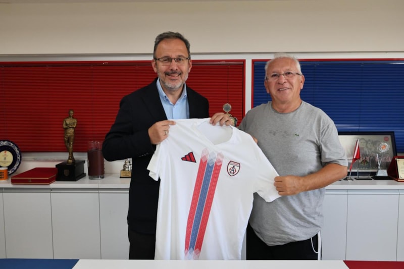 Ziyarette Özkan, Hacıosmanoğlu'na forma hediye etti.