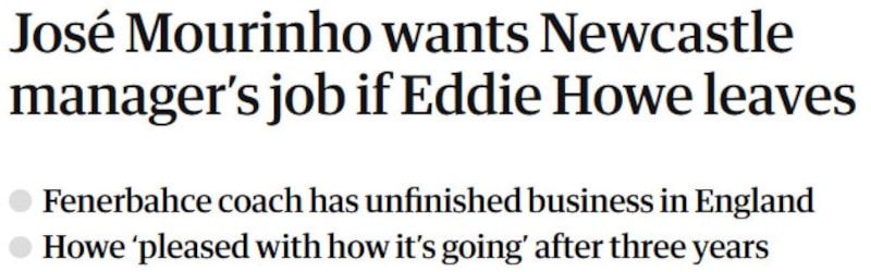 The Guardian'da yer alan habere göre; Mourinho, Eddie Howe'un görevden ayrılması halinde Newcastle United'ın başına geçmeye sıcak bakıyor.