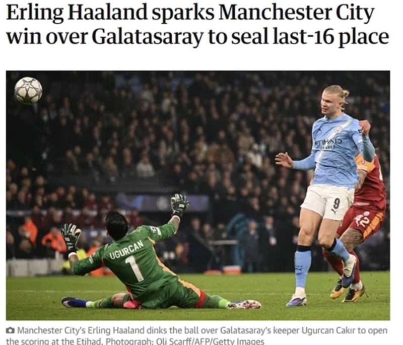 Aldığı galibiyetle ilk 8'e giren Manchester City'nin Galatasaray maçını, İngiltere basını manşetlerine taşıdı.