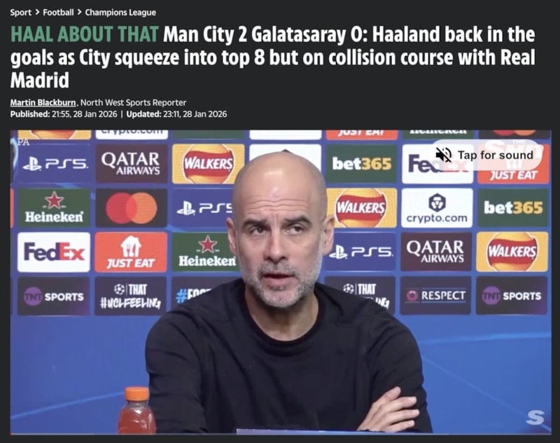 Galatasaray, Şampiyonlar Ligi'nde lig aşamasının son maçında Manchester City'e 2-0 yenilse de son 16 play-off turuna kaldı. Peki Manchester City - Galatasaray maçı İngiliz basınında nasıl yankılandı? İşte atılan manşetler...