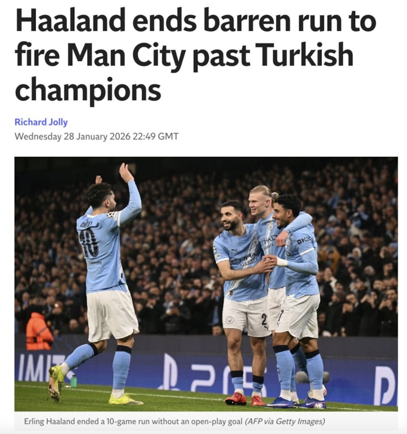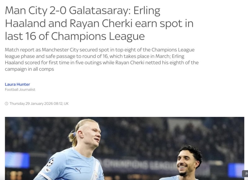 Manchester City, Çarşamba gecesi Şampiyonlar Ligi'nde Galatasaray'ı Erling Haaland ve Rayan Cherki'nin golleriyle 2-0 mağlup etti. Galatasaray'ın bazı anlarda etkili olmaya çalıştığı oldu ancak maça geri dönme şansını hiçbir zaman yakalayamadı. Bu galibiyetle City, lig aşamasındaki sekiz maçında 16 puana ulaştı.