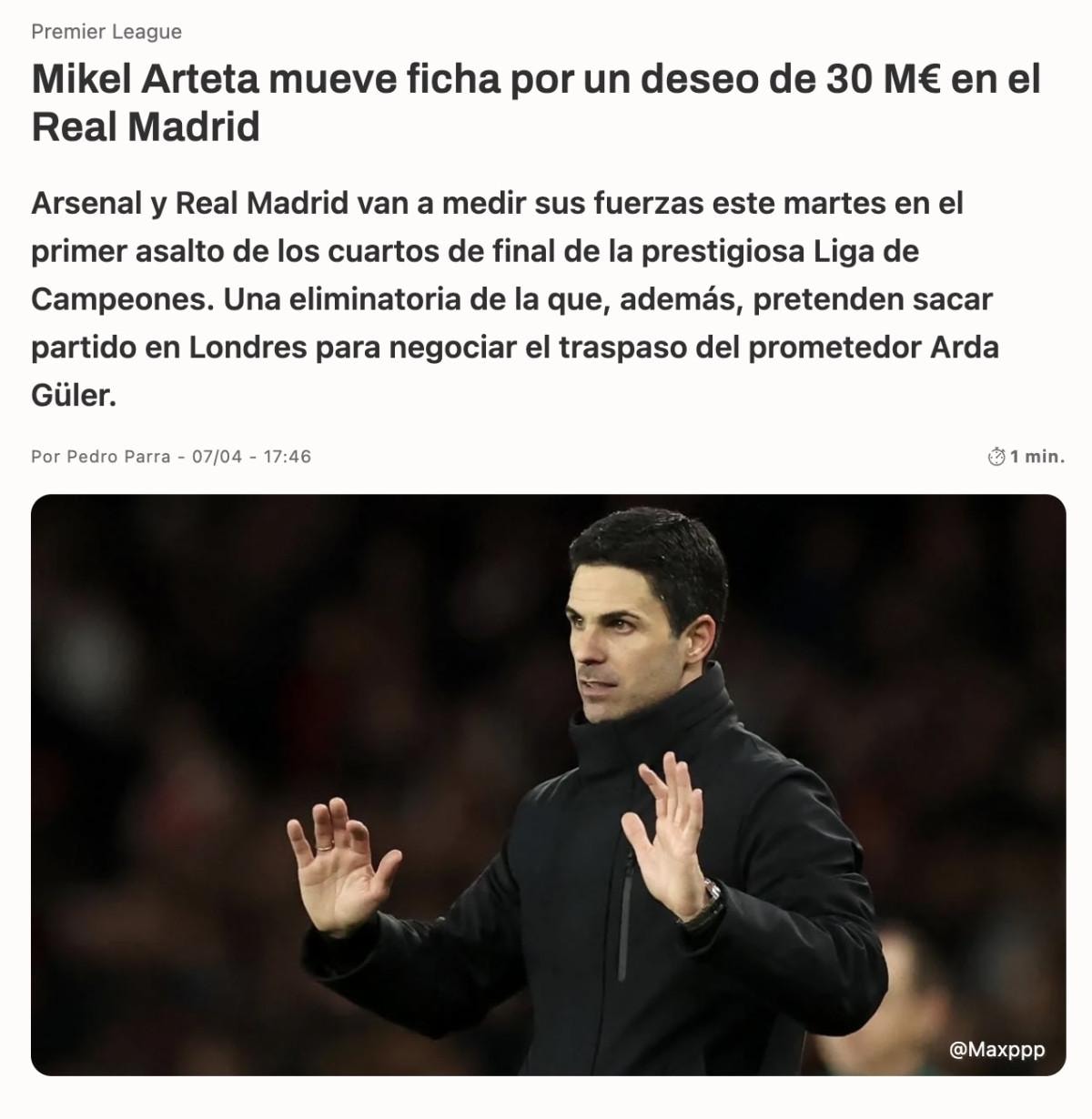 Arsenal Teknik Direktörü Mikel Arteta'nın, Arda'yı yaratıcılığı artıracak bir takviye olarak gördüğü ve Odegaard'ın üstlendiği role benzer bir rol üstlenebileceğini düşündüğü belirtildi.