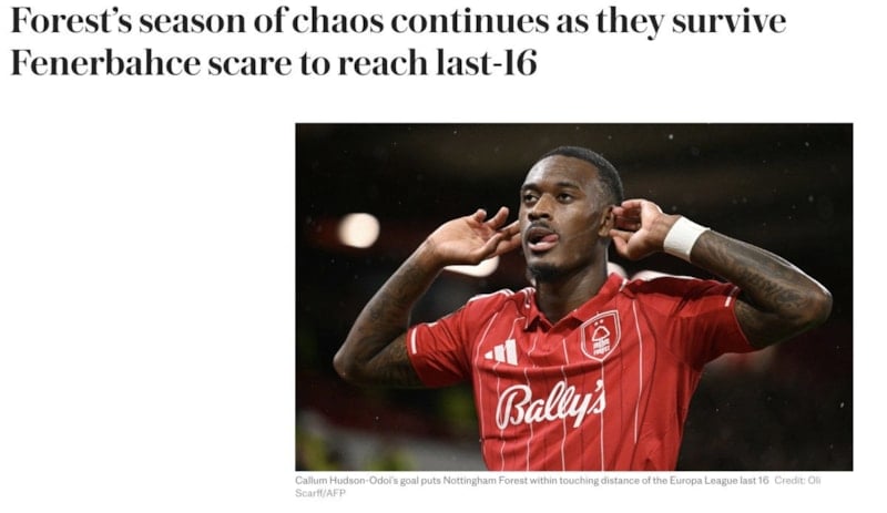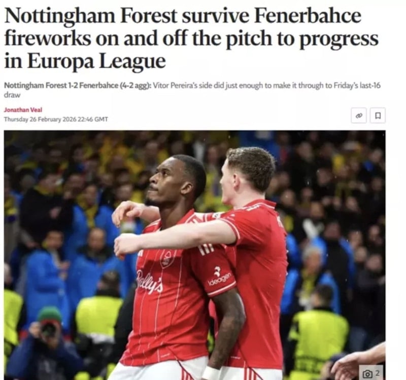 UEFA Avrupa Ligi play-off turunda Fenerbahçe, 3-0 rövanşında Nottingham Forest'ı 2-1 mağlup etmesine rağmen organizasyona veda etti. İngiliz basını mücadeleyi manşetine taşırken Nottingham Forest'ın zorlandığını yazdı.
