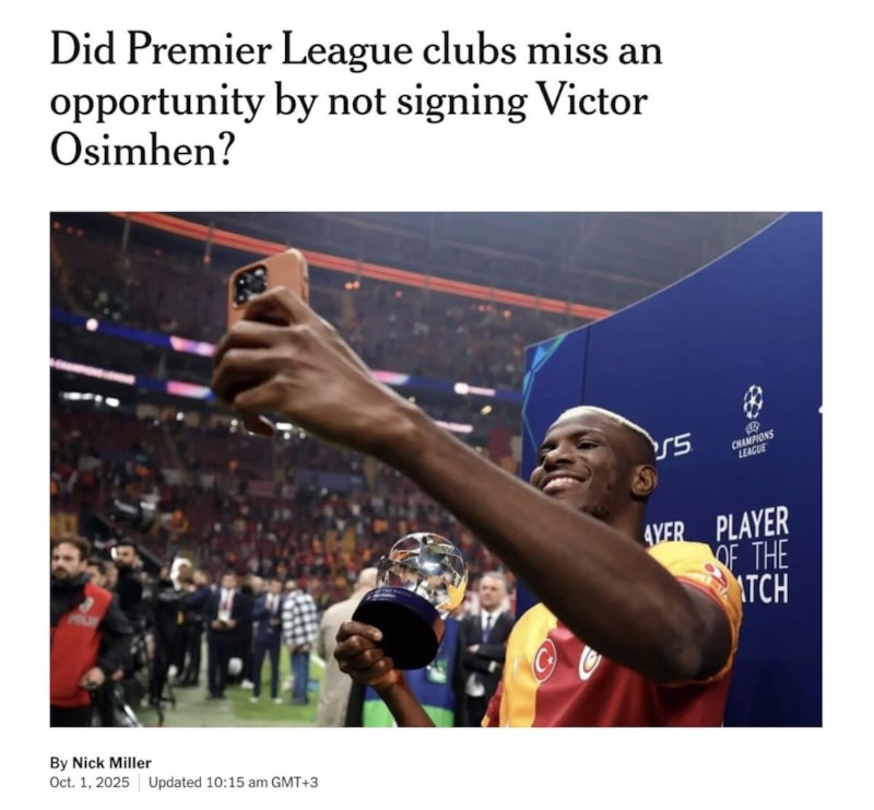 The Athletic, İngiliz büyük kulüplerinin neredeyse hepsinin elit forvet ararken Osimhen'i transfer etmemesini eleştirdi.