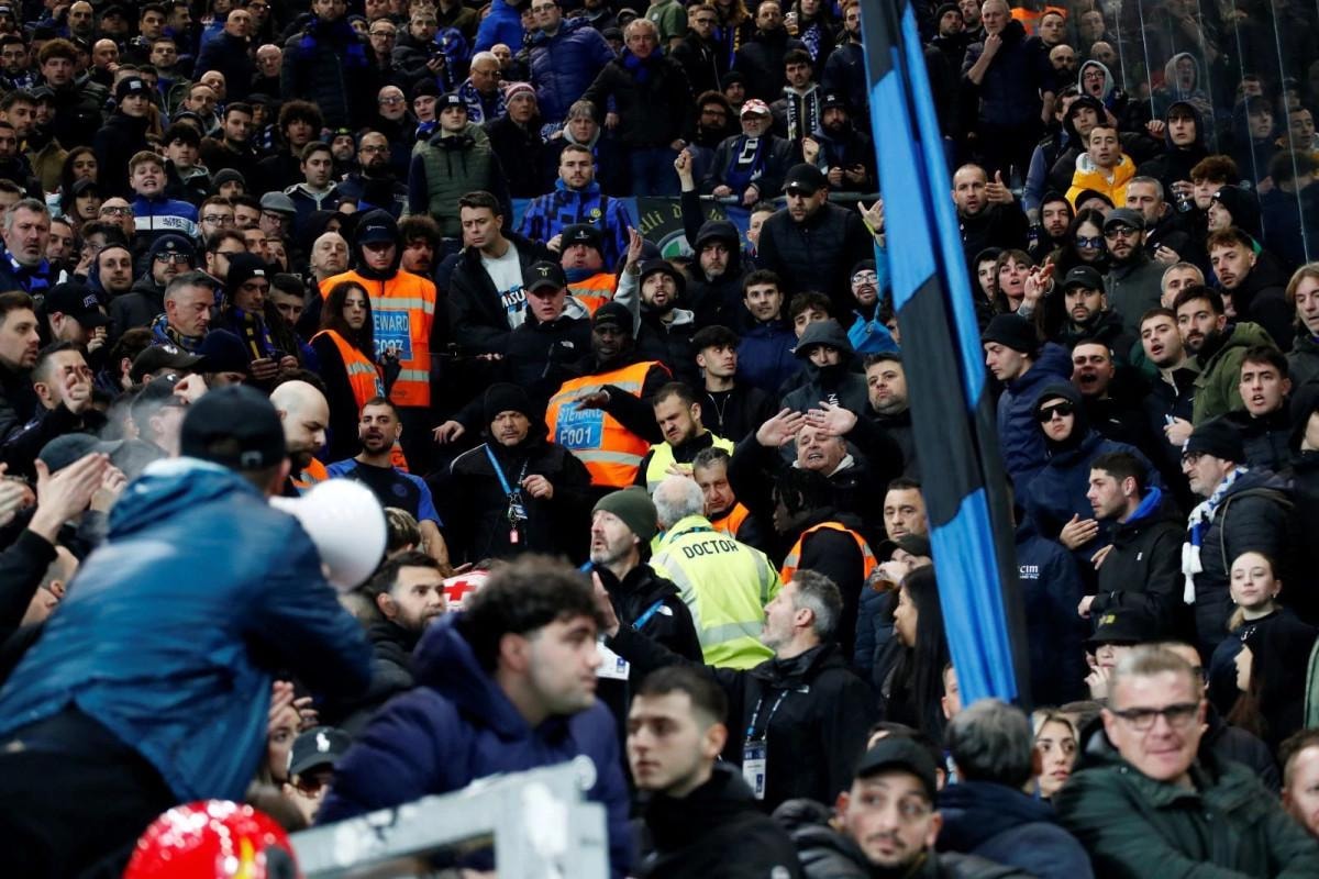 Hakem oyunu durdurdu ve görevliler müdahaleye başladı.