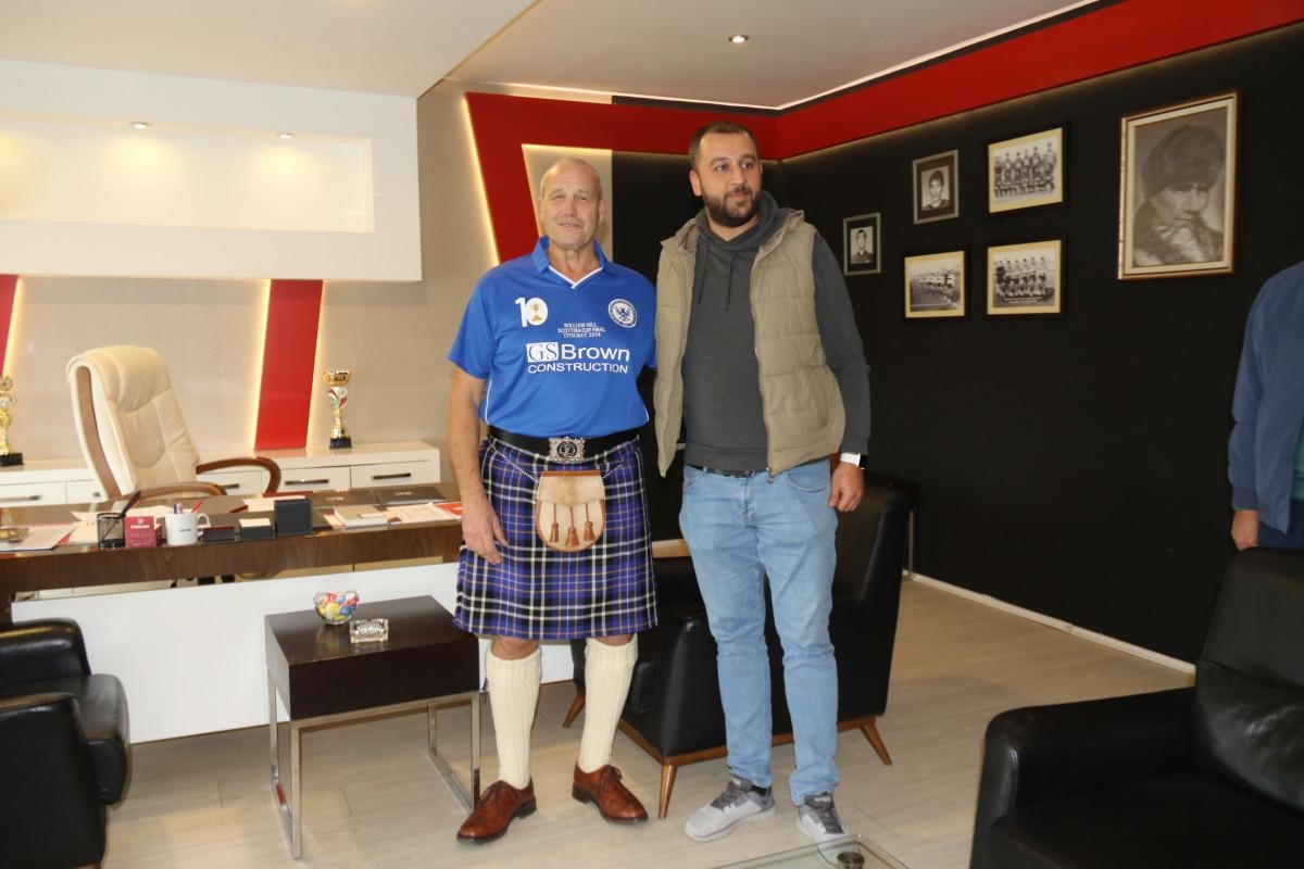 Yöresel kıyafetiyle Eskişehirspor’a destek vermek üzere yola çıkan İskoç taraftar, Eskişehirspor Vali Hanefi Demirkol Tesisleri’nde kulüp yetkilileri ve takım kaptanıyla bir araya gelerek hatıra fotoğrafı çektirdi ve keyifli bir sohbet gerçekleştirdi. İnce belli bardaktan çayını yudumlayan Marshall, her iki takımın da zor günler geçirdiğini, ancak zamanla bu zorlukların üstesinden geleceğini vurguladı. Eskişehirspor - Osmanlı 1453 maçını ise Bölgesel Amatör Lig’in 3. haftasında Eskişehir Yeni Atatürk Stadyumu’nda tribünden izlemeyi planlıyor.
