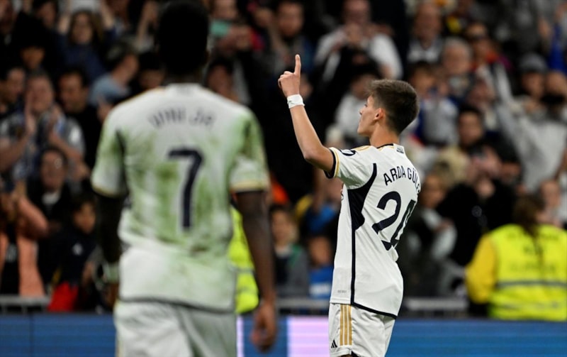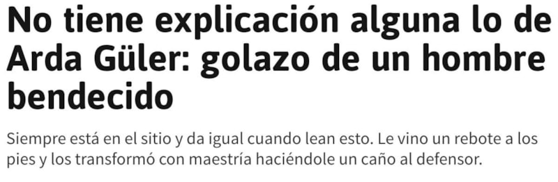 İspanyol basını, Alaves karşısında ağları sarsan milli futbolcu Arda Güler'in gol attıktan sonra, sağ elini kalbine sol işaret parmağını da havaya kaldırdığı sevincine atıfta bulunarak "Mübarek adamdan muhteşem gol" yorumunu yaptı.