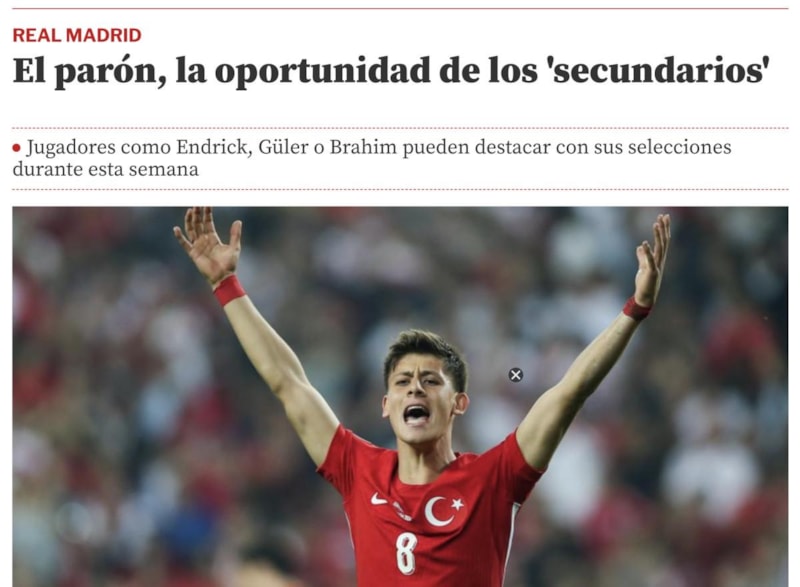 İspanyol basını, Arda Güler için milli maçların bir fırsat olduğunu duyurdu. Mundo Deportivo'da yer alan haberde, Arda'nın milli maçlarda sergileyeceği performansla Carlo Ancelotti'ye mesaj gönderebileceği yazıldı.