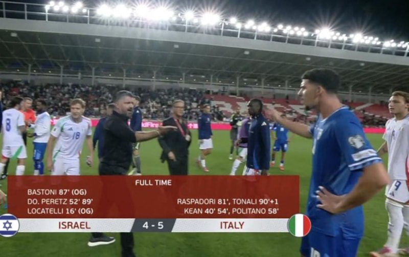 8 Eylül'de oynanan İtalya’nın İsrail’i 5-4 yendiği maçın sonunda Teknik Direktör Gennaro Gattuso ve İsrailli futbolcuların tartıştıkları görüntü ortaya çıktı.
