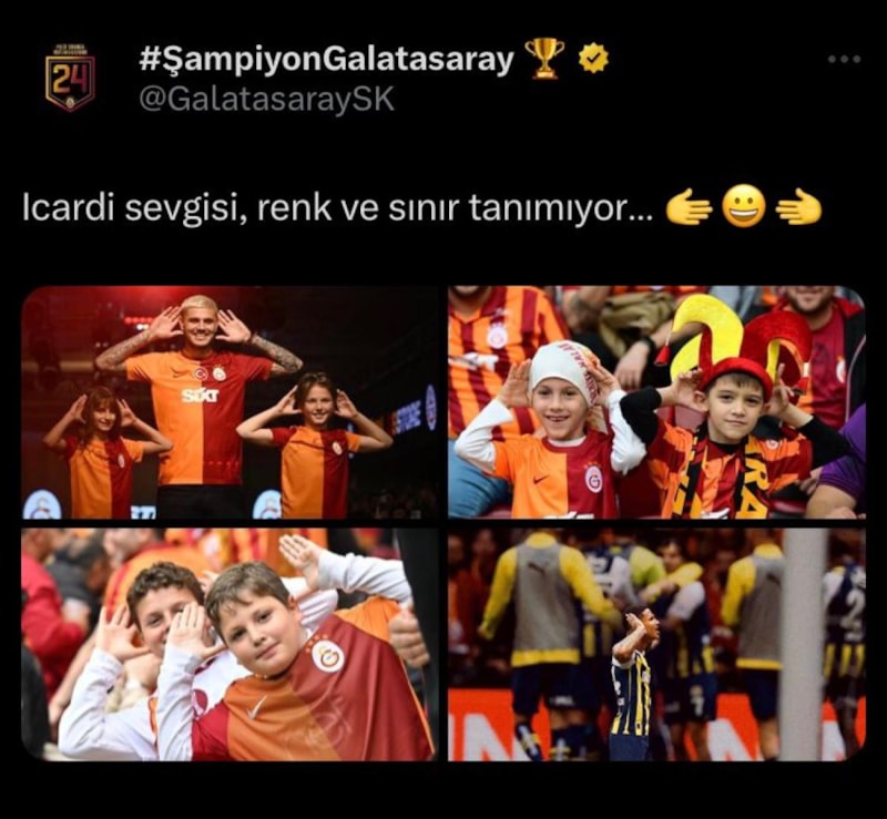 Sarı-kırmızılı takım, bu paylaşımda Icardi sevinci yapan Fenerbahçeli Jayden Oosterwolde'ye de gönderme yaptı.