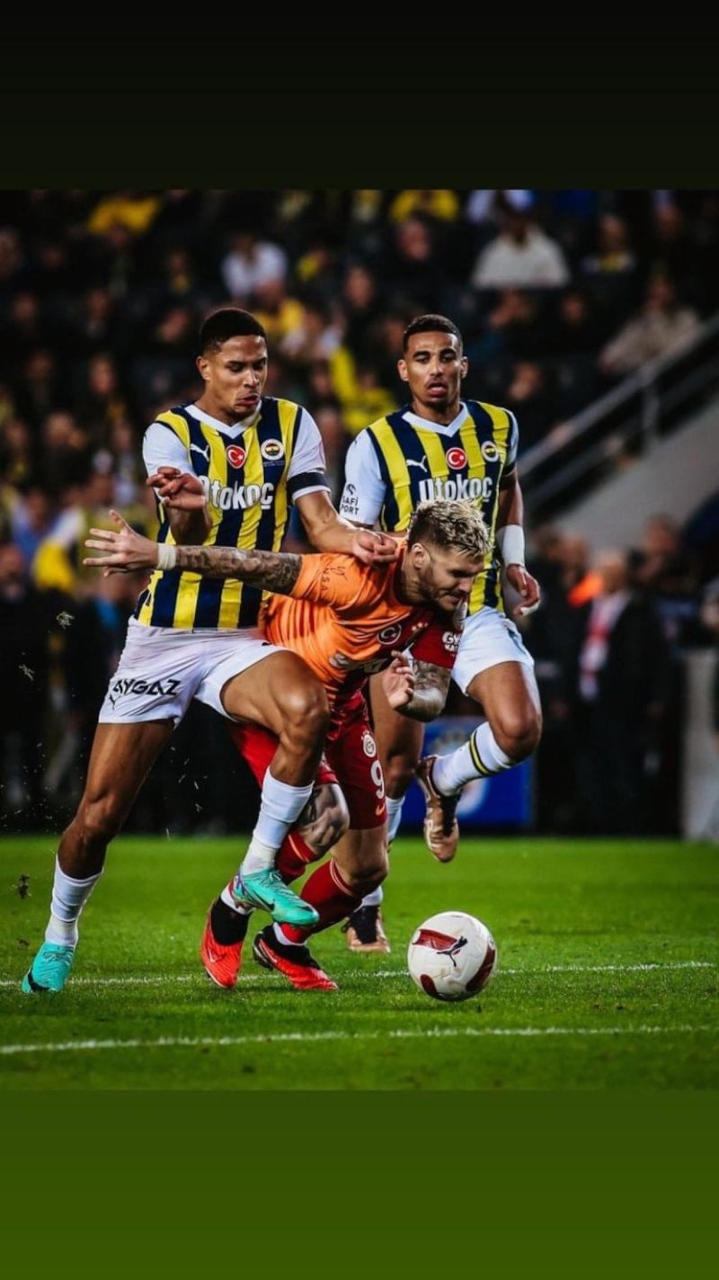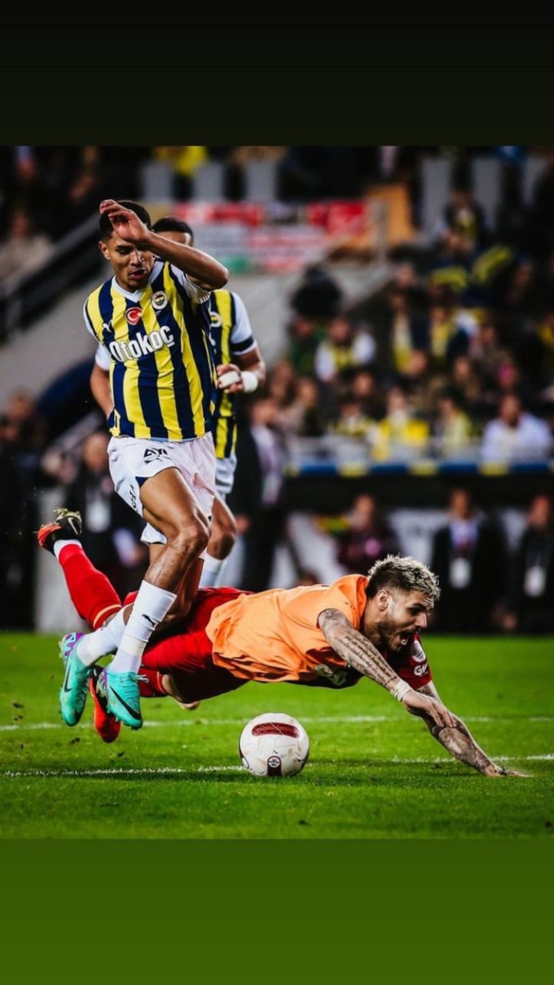Galatasaray maçından kareler paylaşan Oosterwolde, Icardi ile girdiği ikili mücadelenin yanı sıra, Ali Sami Yen Spor Kompleksi'nde açtıkları Fenerbahçe bayrağını paylaştı.