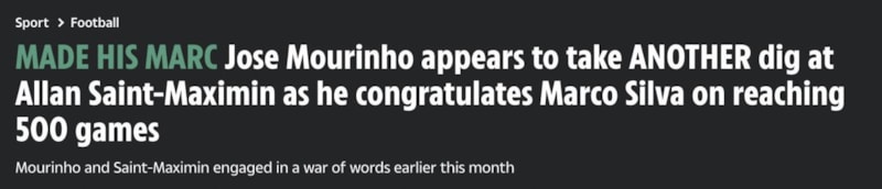 Fenerbahçe'de Jose Mourinho'nun Allan Saint-Maximin'i maç kadrosuna almamasıyla başlayan karşılıklı atışma dikkat çekmişti. Portekizli hoca son olarak meslektaşı Marco Silva'yı tebrik ederken 28 yaşındaki isme bir kez daha gönderme yapmaktan geri kalmadı.