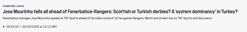 TNT Sports'a konuşan Mourinho, şampiyonluk için çekiştikleri ezeli rakipleri Galatasaray ile ilgili dikkat çeken ifadeler kullandı.