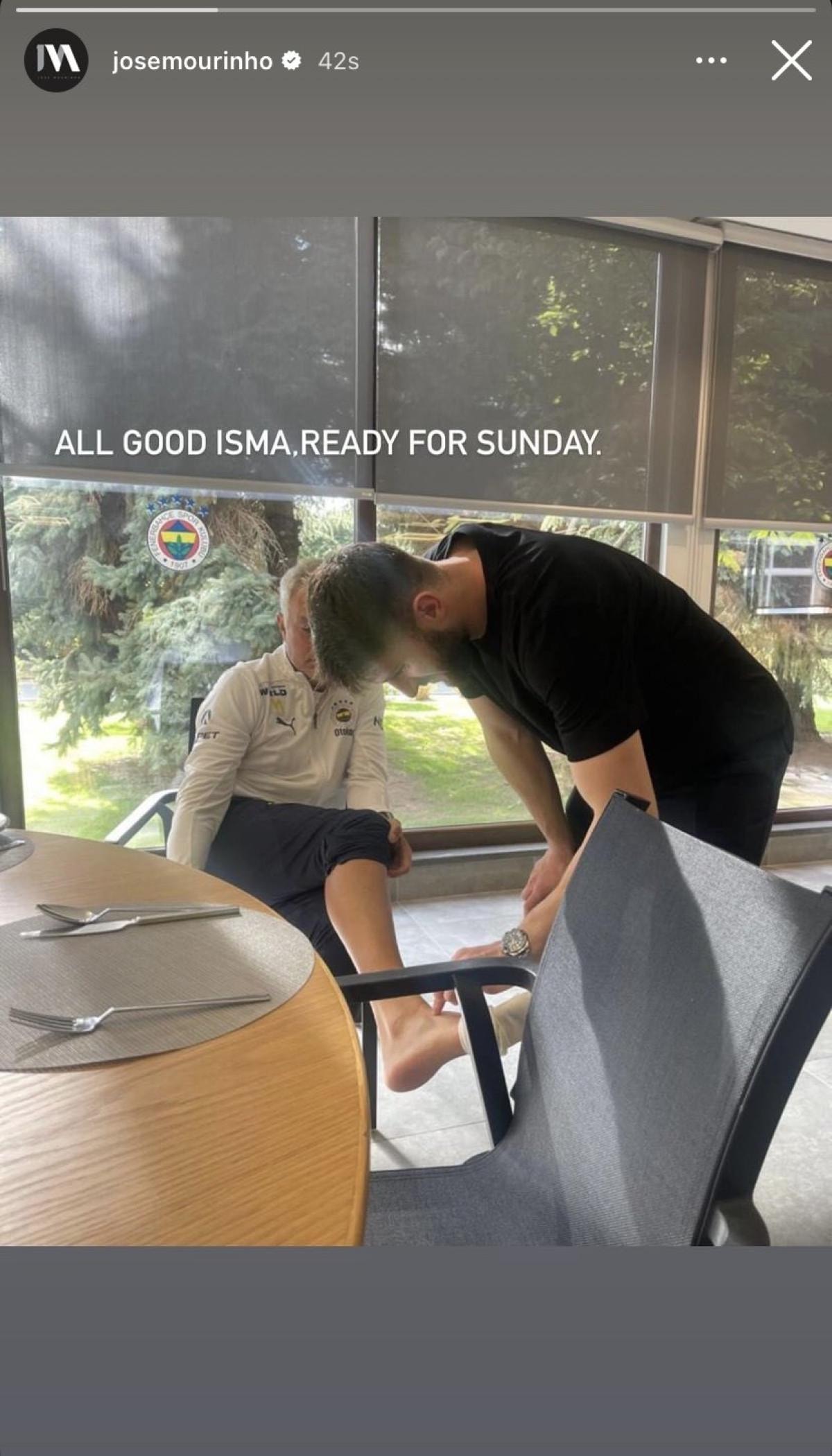 Mourinho, bugün gerçekleştirilen antrenmanda İsmail Yüksek ile çarpıştığı ve ardından yerde kaldığı görüntüleri sosyal medya hesabından paylaştı.