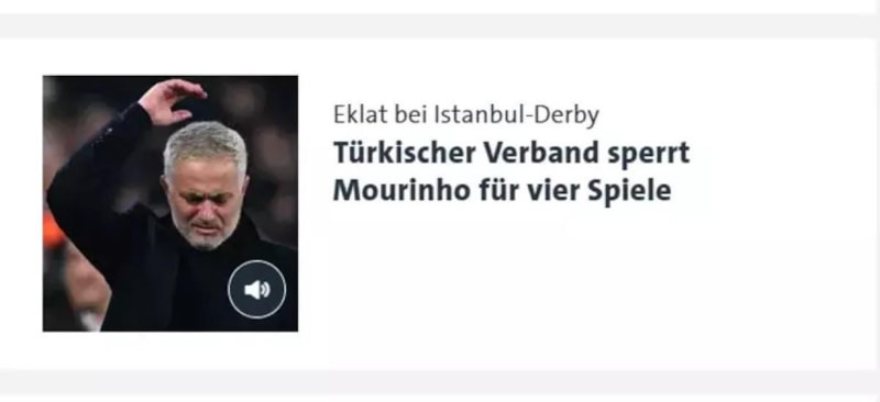 "Galatasaray-Fenerbahçe maçı sonrası eski Roma teknik direktörü Mourinho'ya 4 maç ceza. Önümüzdeki saatlerde başka gelişmeler de yaşanabilir çünkü Fenerbahçe muhtemelen itiraz edecek. Bu iş burada bitecek gibi gözükmüyor."