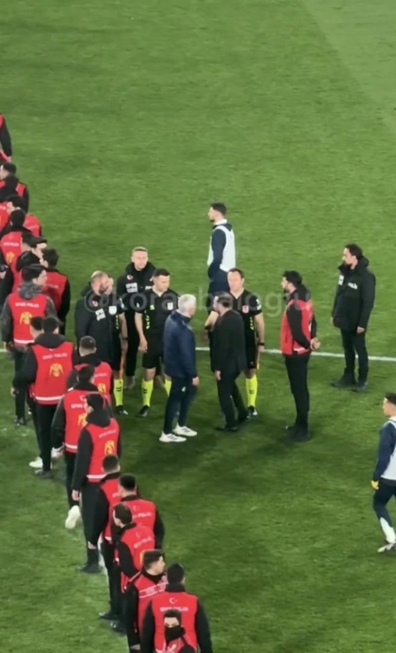 A Spor'dan Koray Baloğlu'nun paylaştığı görüntüde, Buruk ve Mourinho'nun hakemlerle tokalaşmaya gittiği görüldü.