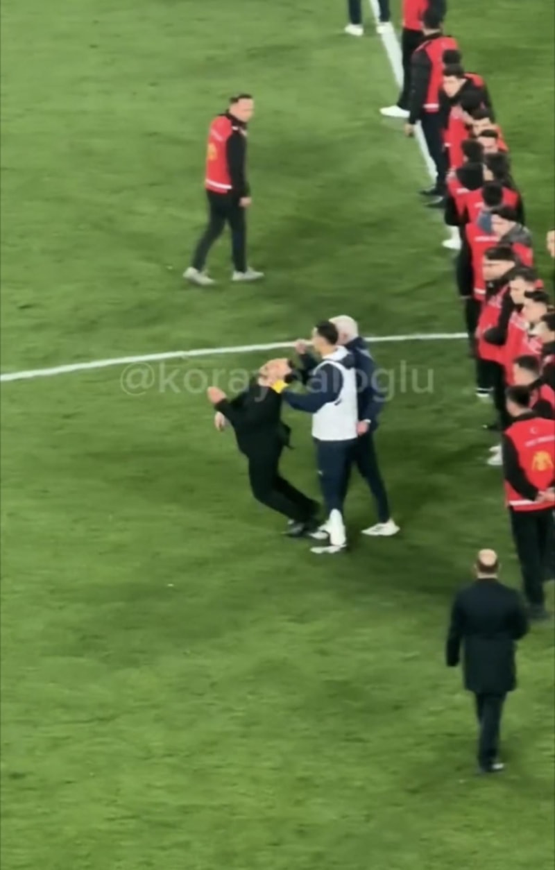 Daha sonra ise Mourinho, arkadan gelerek Buruk'a fiziksel müdahalede bulundu.