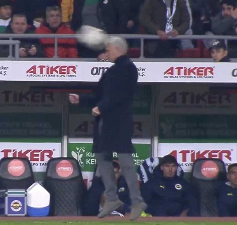Fenerbahçe'nin dünyaca ünlü teknik adamı Jose Mourinho, taca çıkan topu kafayla karşıladı.