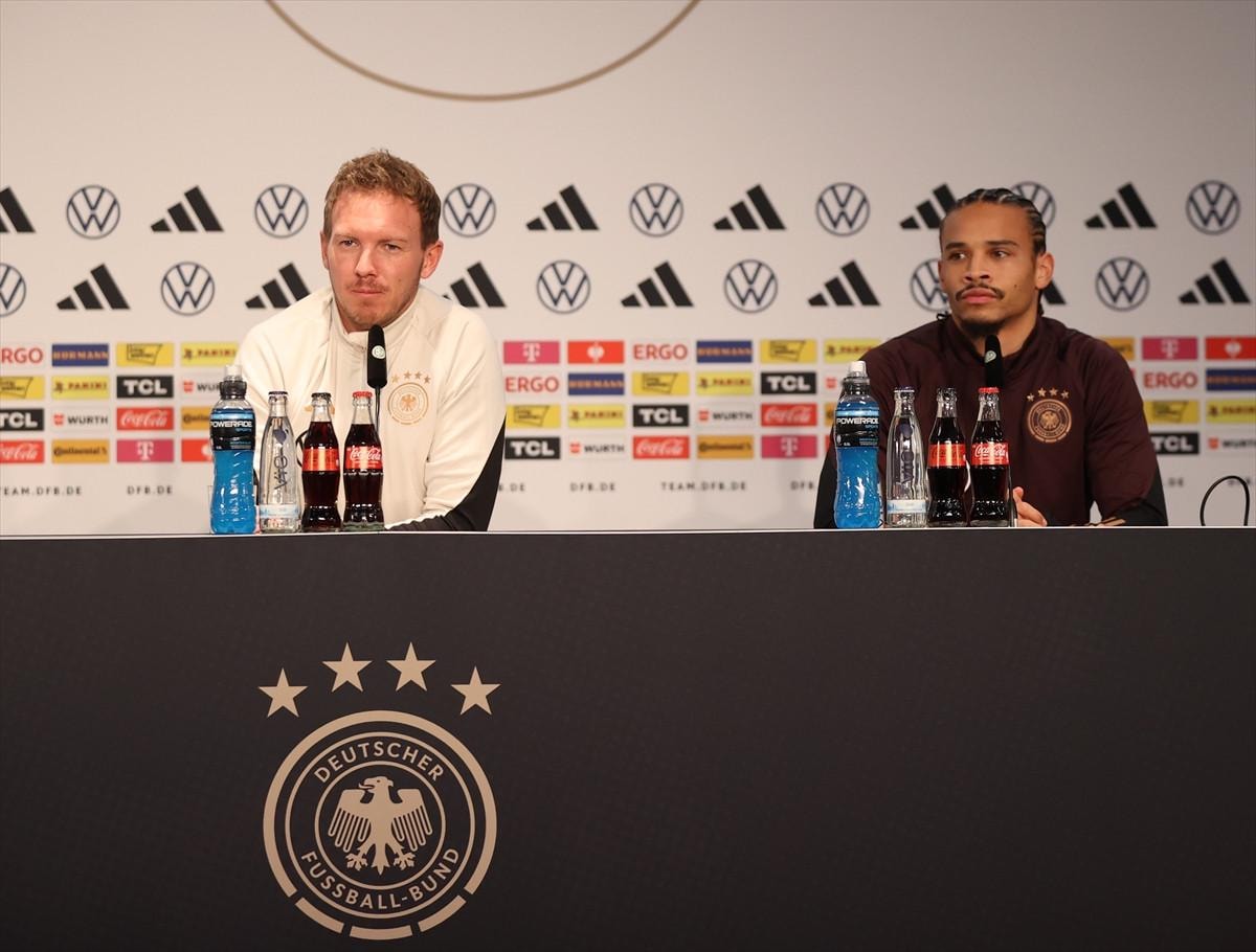 Almanya Milli Futbol Takımı Teknik Direktörü Julian Nagelsmann, Türkiye ile oynayacakları özel maç öncesinde Alman milli futbolcu Leroy Sane ile basın toplantısı düzenledi.