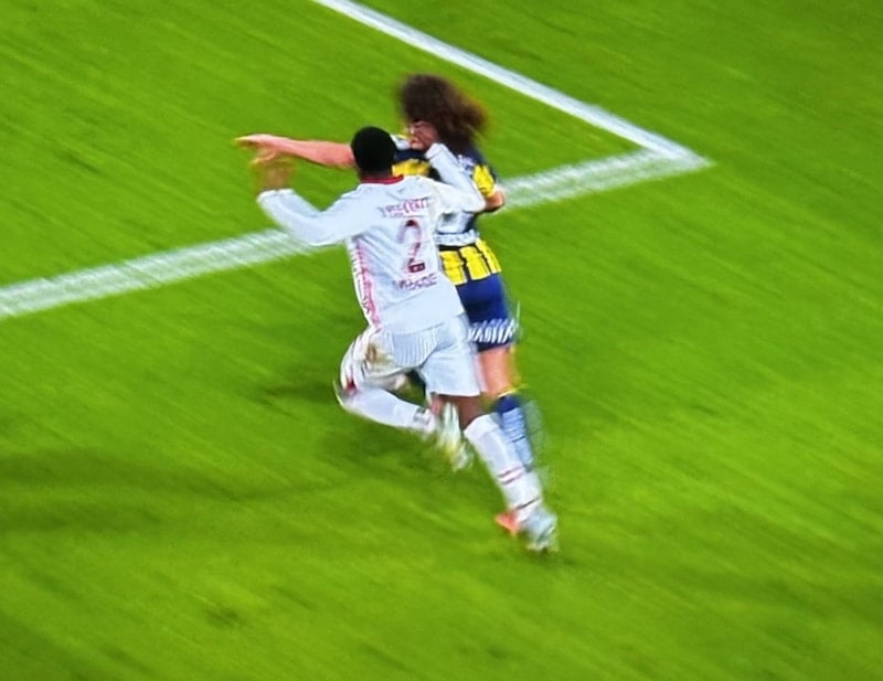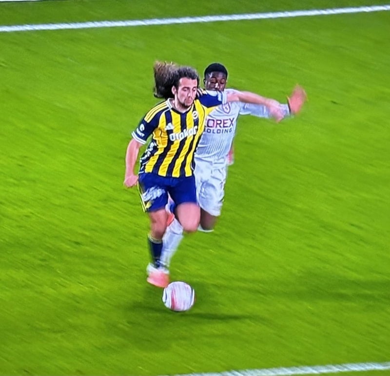 Fenerbahçe'de Matteo Guendouzi, 45+2. dakikada ceza sahasına girmek isterken Joe Mendes ile girdiği ikili mücadelenin ardından yerde kaldı.