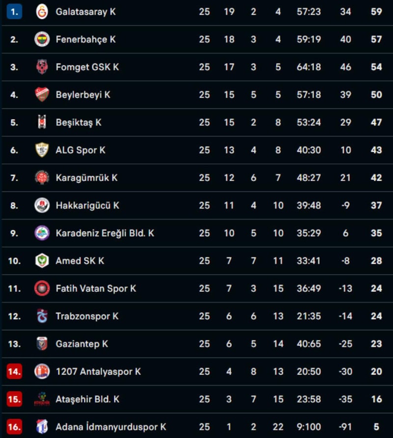 Şampiyonluk yarışını doğrudan etkileyen maçta Gökhan Bozkaya yönetimindeki Fenerbahçe ile Metin Ülgen'in çalıştırdığı Galatasaray, hakem Burak Taşkınsoy'un düdük çaldığı mücadelede karşı karşıya geldi.