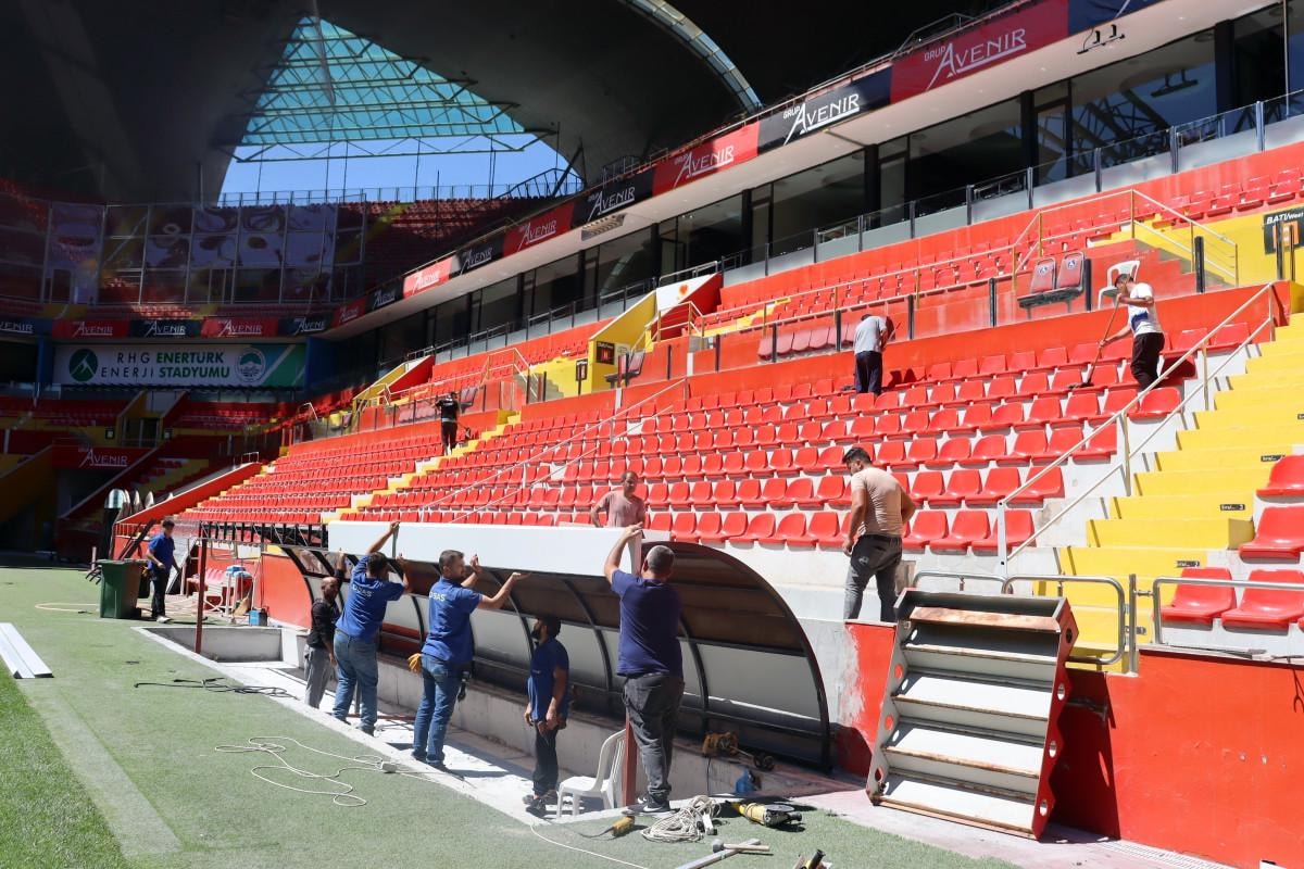 90 günün ardından Kayserispor-Sivasspor maçı ile taraftara kapılarını açacak olan 32 bin 864 kapasiteli statta, bütün zemin yenilenirken, koltuklar boyandı ve yedek kulübesi de aşağıya gömüldü.