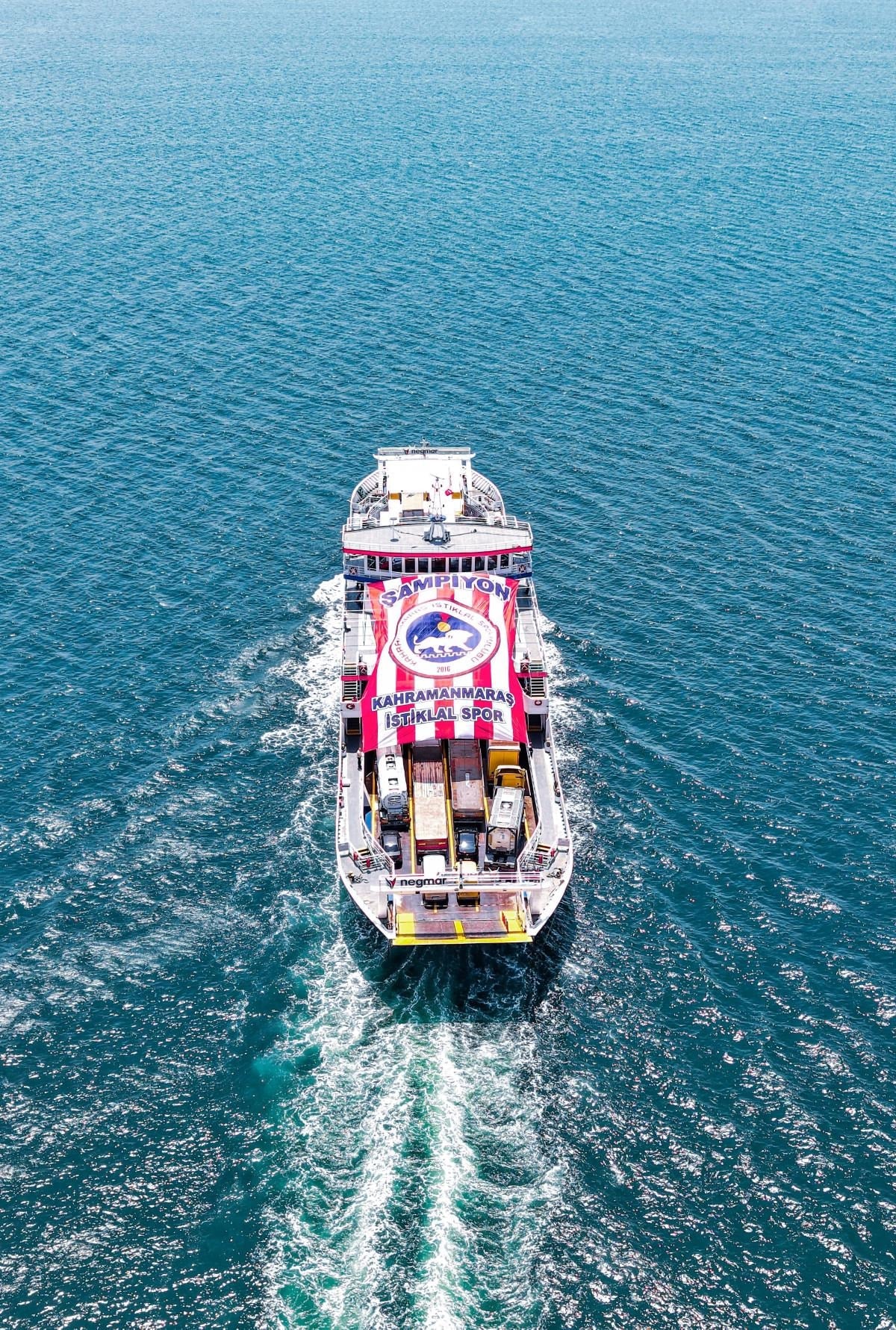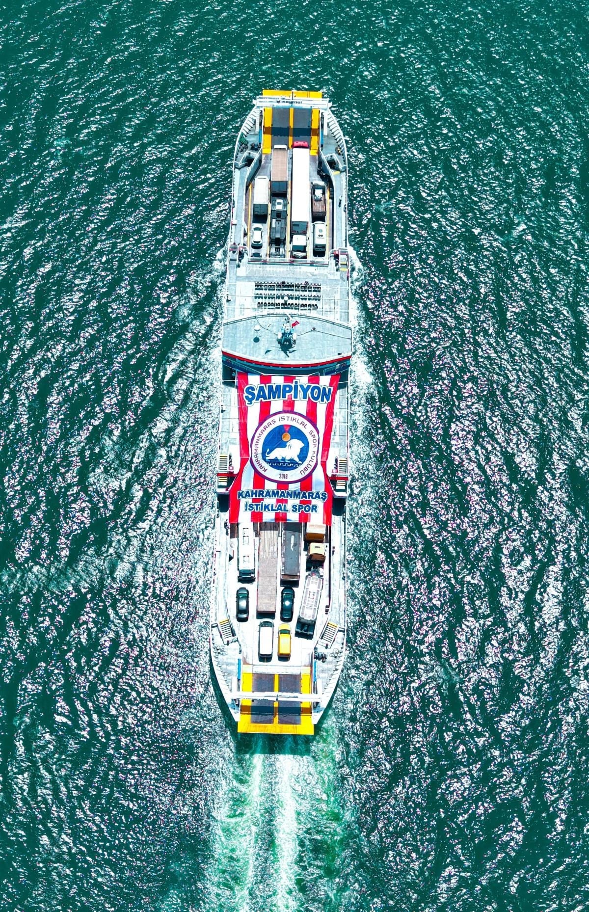 Gemi üzerine asılan dev pankartta kulübün logosu ve "Kahramanmaraş İstiklalspor" yazısı yer alırken, organizasyona Kahramanmaraş Büyükşehir Belediyesi de destek verdi.