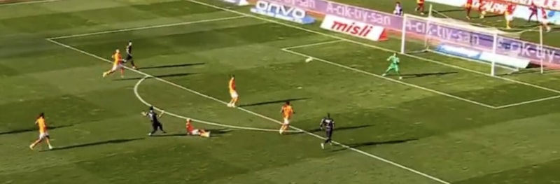 Dakikalar 57'yi gösterdiğinde Da Costa'nın pasında topu orta kulvarda kontrol eden Aytaç, kaleye bakıp sağ ayağıyla uzak mesafeden sert şutunu çekti. Top harika bir şekilde falso alarak filelere gitti.