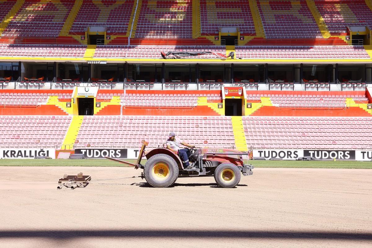 Büyükşehir belediyesi ekiplerince yeni sezon hazırlıkları kapsamında şehrin markası Kayserispor’un maçlarını oynadığı Kayseri Stadyumu’nda çim serimi işlemlerine başlandı.