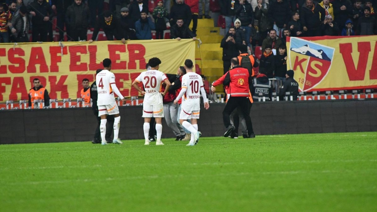 Kayserispor - Galatasaray karşılaşması, yaşanan olayların ardından yaklaşık 5 dakika durdu ve sonra yeniden başladı.