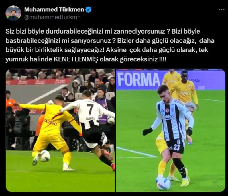 Kayserispor Futbol Direktörü Muhammed Türkmen, deplasmanda Beşiktaş'a 2-0 mağlup oldukları karşılaşma sonrası paylaşımda bulundu.
