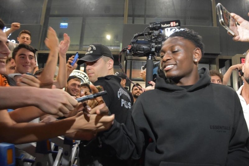 Trabzon Havalimanı’nda kulüp yetkilileri ve bir grup taraftar tarafından karşılanan 22 yaşındaki futbolcu, taraftarların ilgisine üçlü çektirerek karşılık verdi ve basın mensuplarına poz verdi.