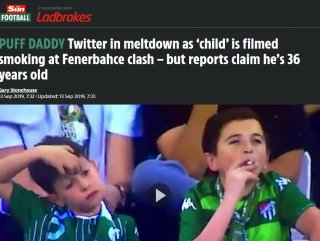 Çocuklar için oynanan Bursaspor-Fenerbahçe maçında sigara içerken görüntülenen ve çocuk olmadığı daha sonra anlaşılan 36 yaşındaki taraftar Kenan Vatansever, İngiliz basınının bile dikkatini çekti.