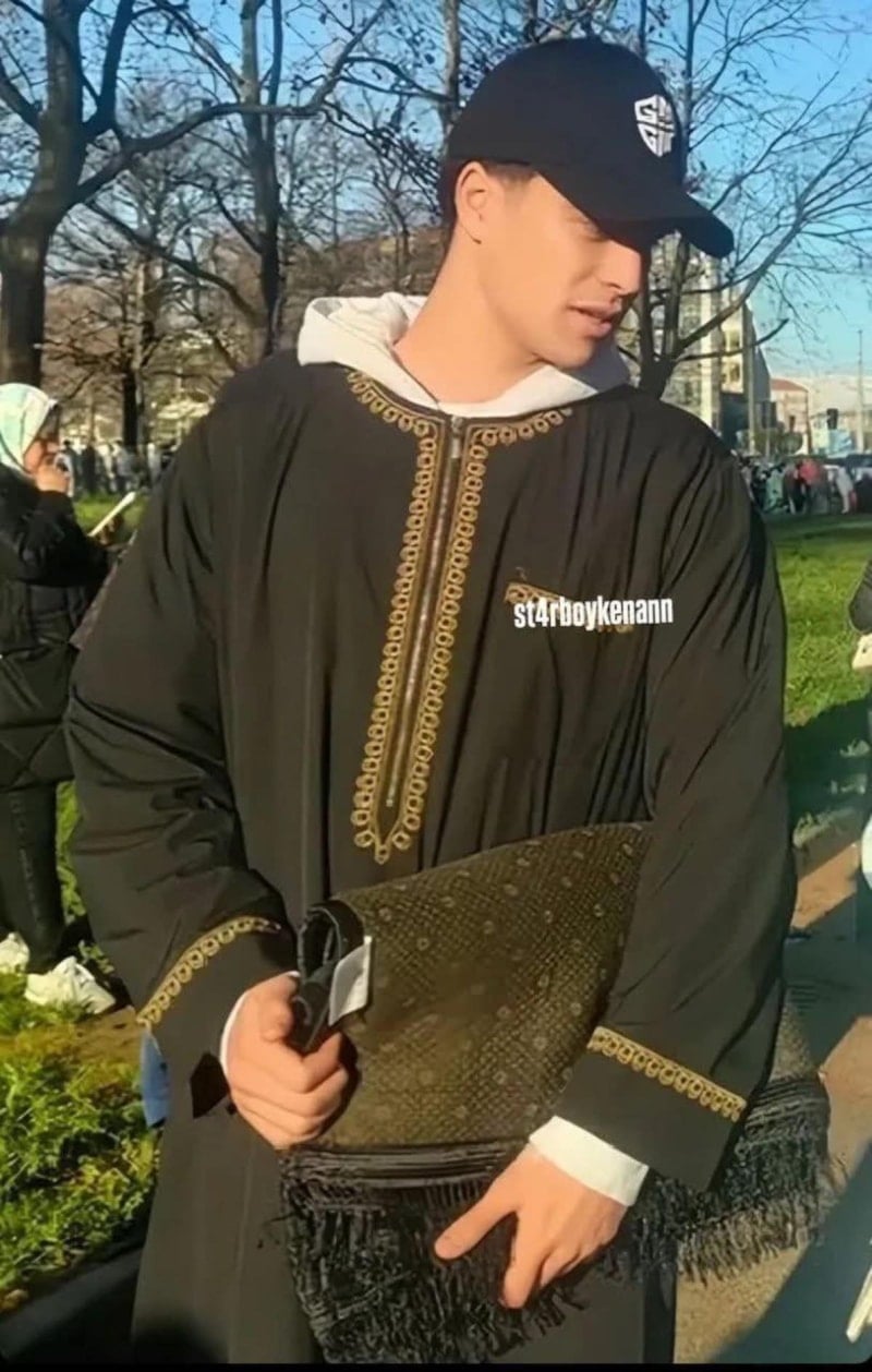 Milli futbolcu Kenan Yıldız, elinde seccade ile camiye giderken görüntülendi.