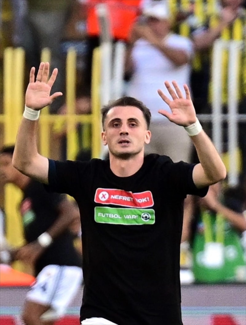 Sarı-lacivertlilerde ilk kez ilk 11'de başlayacak olan Kerem Aktürkoğlu da tribünleri selamladı.