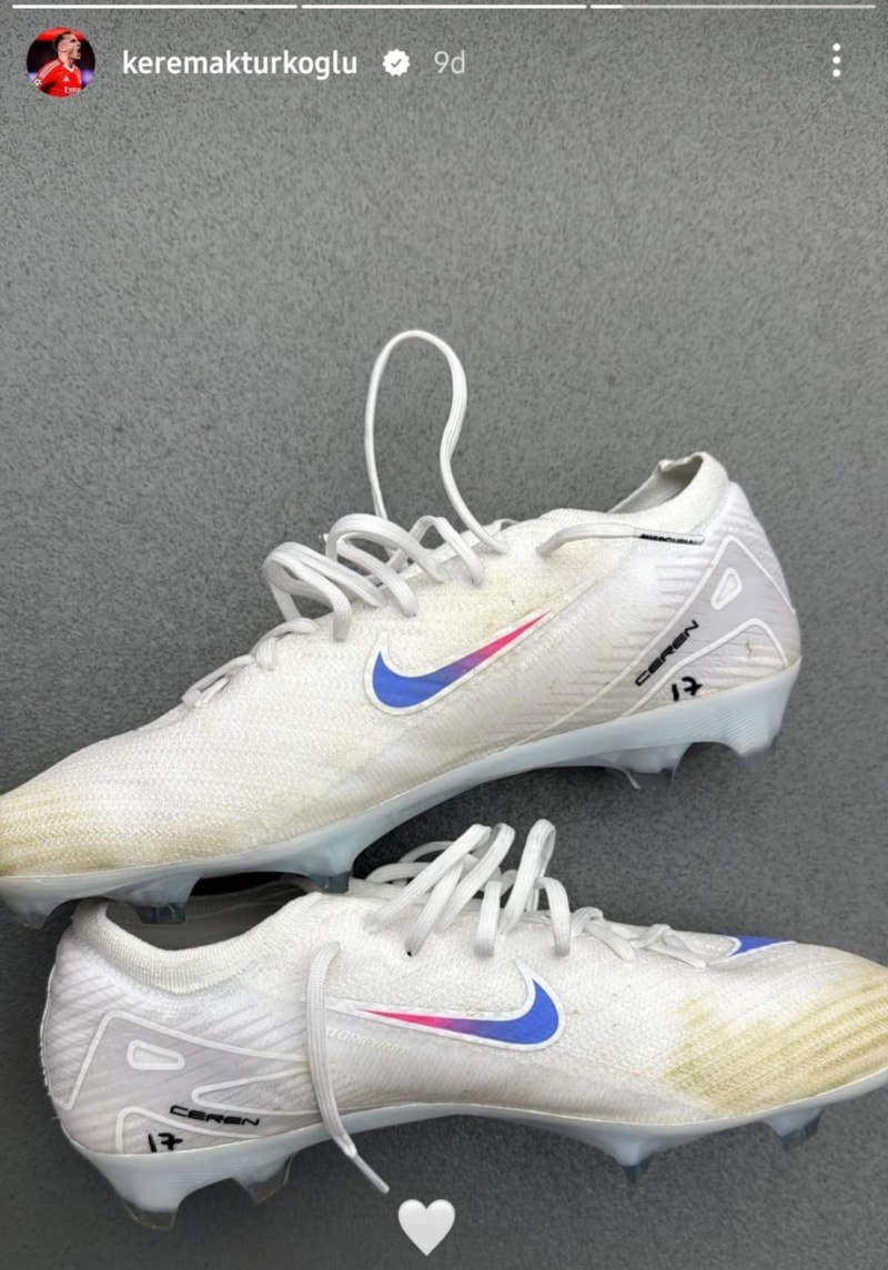 Benfica forması giyen Kerem Aktürkoğlu, kramponuna nişanlısı Ceren Azak'ın ismini yazdırdı. Kerem, kramponunu takipçileriyle paylaştı.