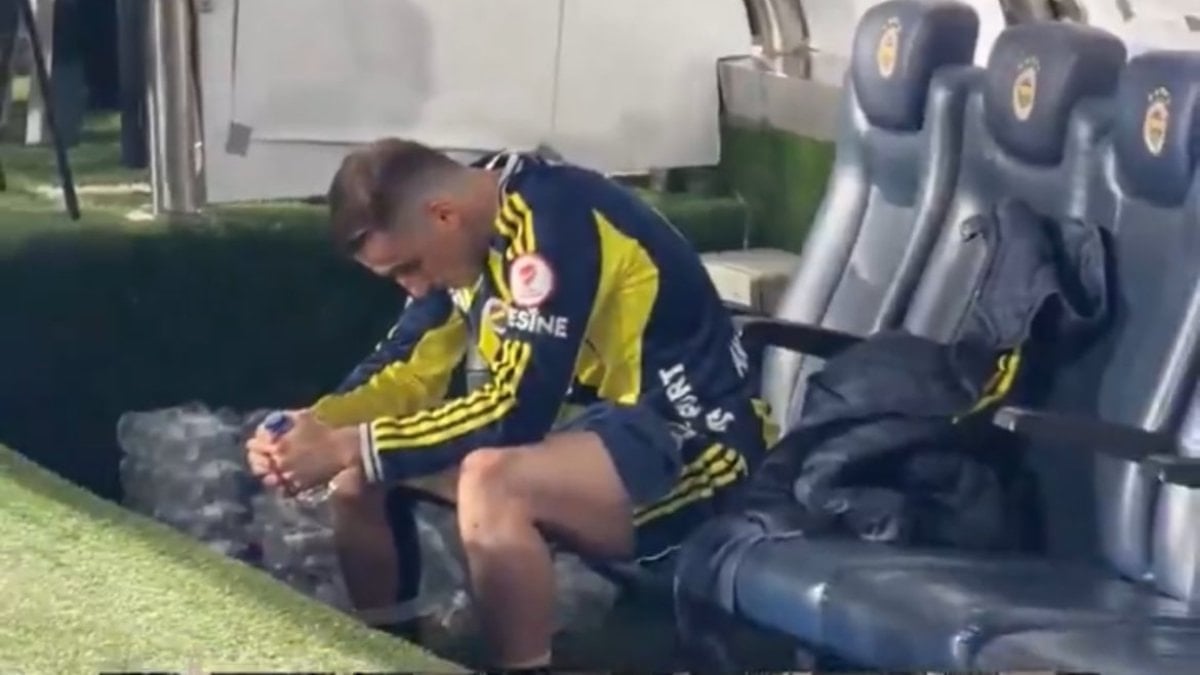 Kerem Aktürkoğlu'nun yedek kulübesinde başı önde tek başına oturduğu görüntüsü geceye damga vurdu.
