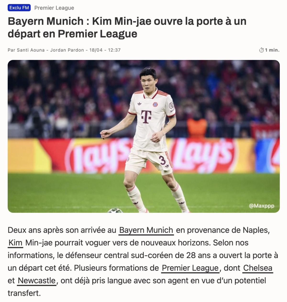 Fenerbahçe'de gösterdiği başarılı performansla Avrupa devlerinin radarına giren ve geçtiğimiz sezon başında Napoli'den Bayern Münih'e 50 milyon euroya transfer olan Kim Min-Jae, Almanya kariyerini noktalayabilir.