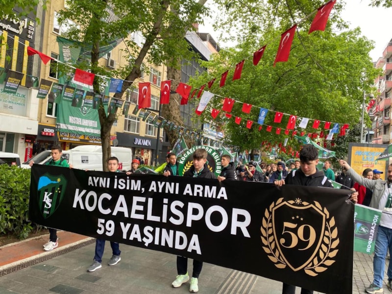 Kocaelispor'un 59. kuruluş yıl dönümü törenle kutlandı. Kent merkezinde toplanan taraftarlar ve kulüp yönetimi, ellerinde pankartlar ve bando eşliğinde İzmit Kent Meydanı'na yürüdü.