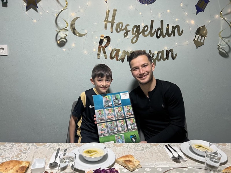 Futbolcu Yusuf Cihat Çelik, hayranlarından Kerem Mert Soydan'ın aile sofrasına oturdu.