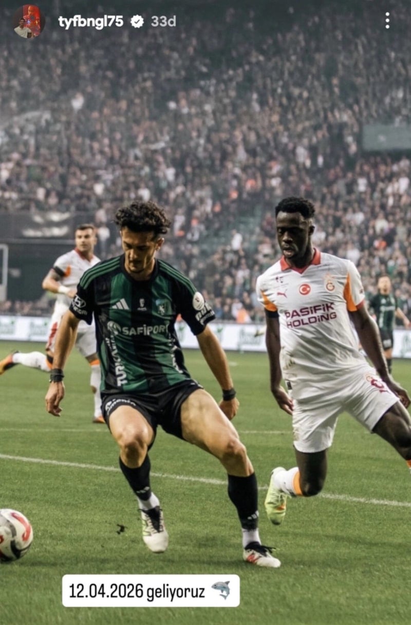 Süper Lig ekiplerinden Kocaelispor'da forma giyen Tayfur Bingöl, sosyal medya hesabından Galatasaray maçıyla ilgili flaş bir paylaşım yaptı.
