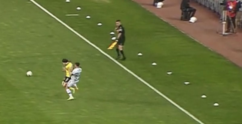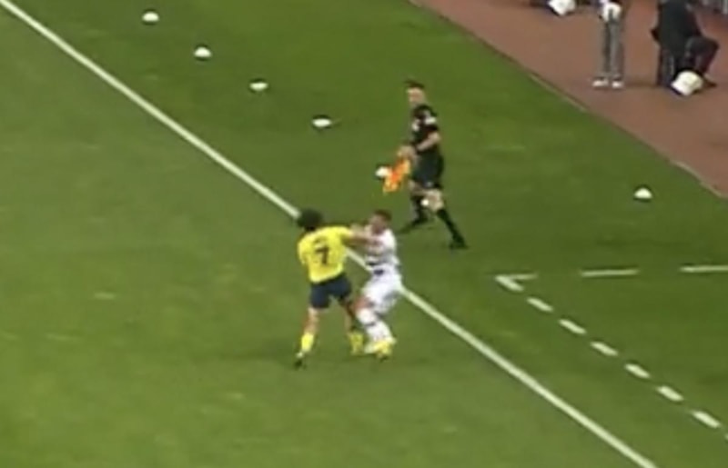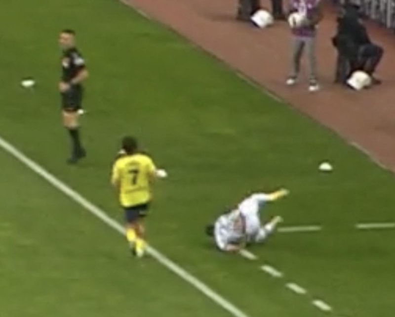 Ayağa kalkan savunma oyuncusu, daha sonra Ferdi'ye sert bir faul yaptı.