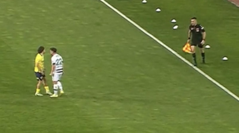 Bu pozisyon sonrasında ise iki futbolcu arasında tartışma çıktı. Hakem Bahattin Şimşek, bu anın ardından Ahmet'e sarı kart gösterdi.