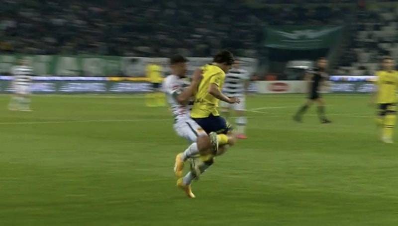 Konyaspor - Fenerbahçe maçının ilk yarısında ev sahibi ekibin futbolcusu Ahmet Oğuz, sarı-lacivertli oyuncu Ferdi Kadıoğlu'na sert bir faulde bulundu. Bu anın ardından ortalık karışırken Ahmet Oğuz'a sarı kart çıktı.