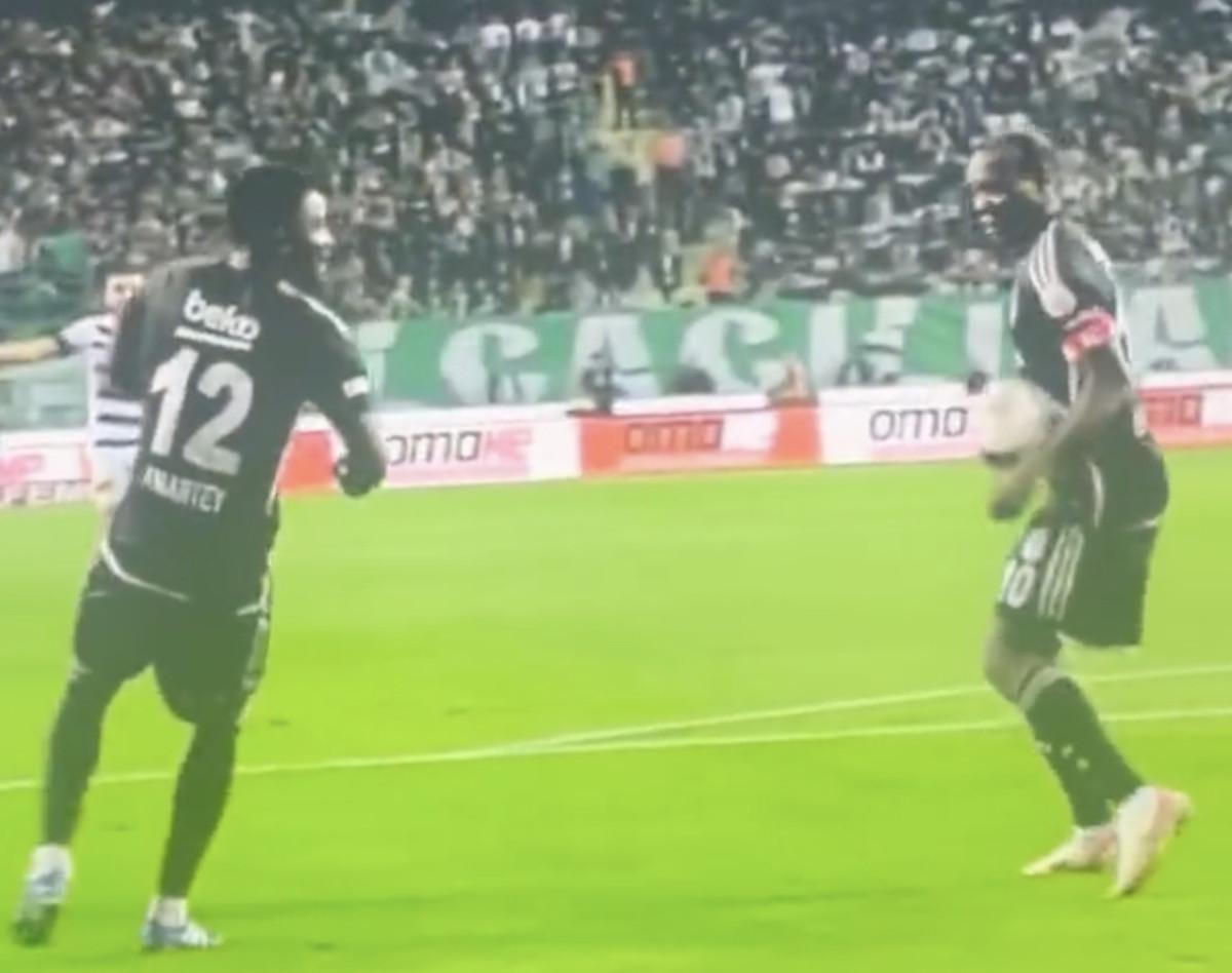 Aboubakar'a çarpan top sonrası elle oynama gerekçesiyle Konyasporlular penaltı bekledi ancak oyun devam etti.
