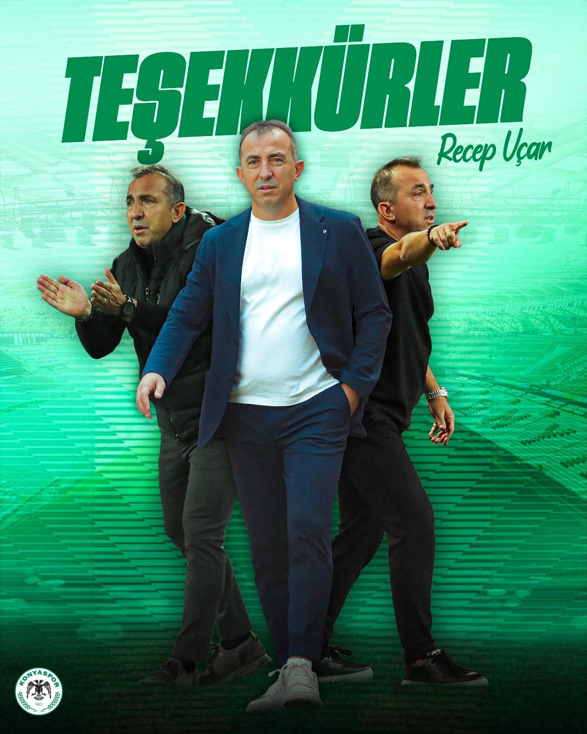 Konyaspor Kulübü’nden yapılan açıklamada, “Teşekkürler Recep Uçar! Teknik direktörümüz Recep Uçar ile karşılıklı anlaşarak yollarımızı ayırdık. Kulübümüze verdiği hizmetlerden dolayı Recep Uçar ve teknik ekibine teşekkür eder, bundan sonraki kariyerlerinde başarılar dileriz.” ifadeleri kullanıldı.