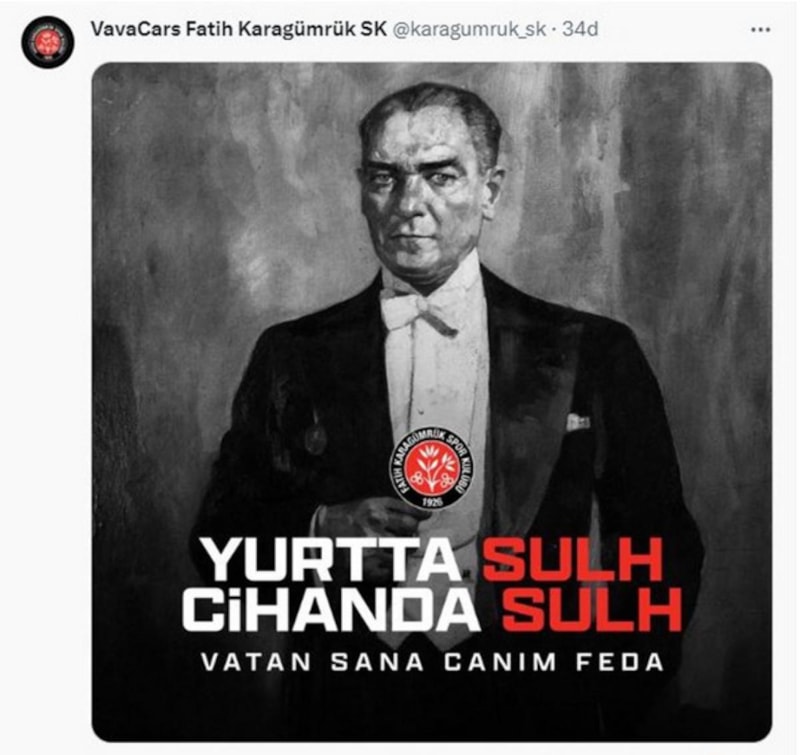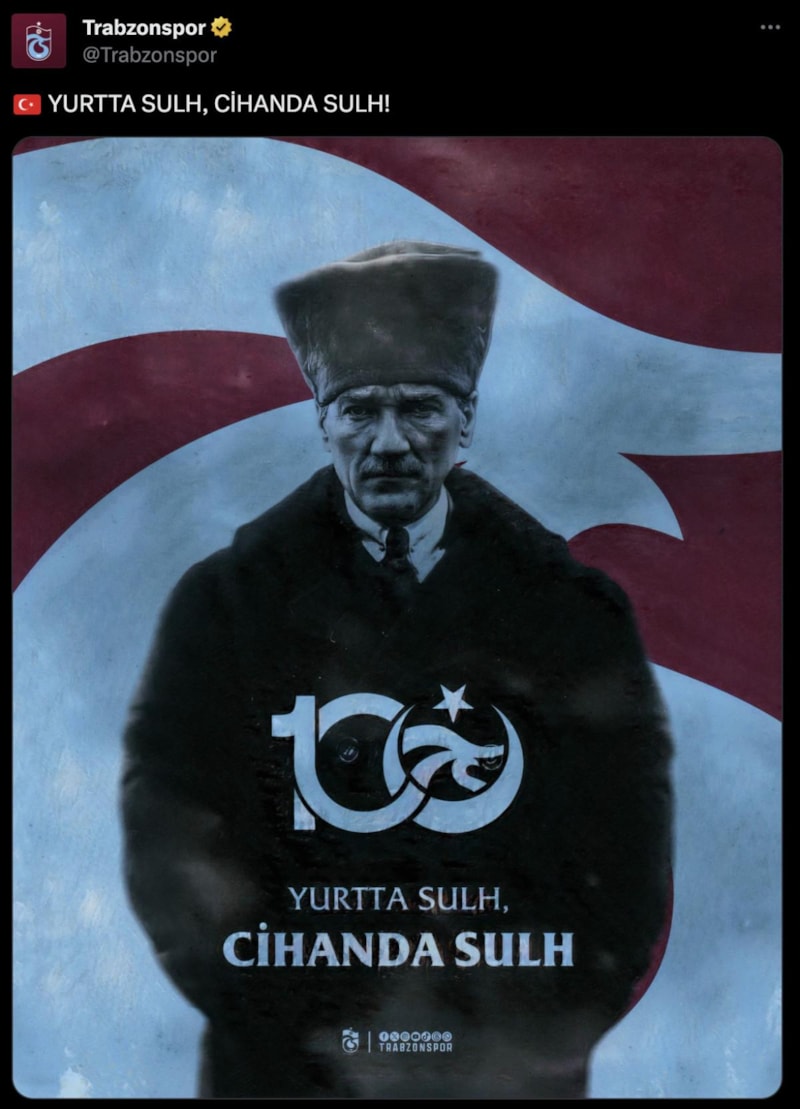 Galatasaray ile Fenerbahçe maçına saatler kala Suudi yetkilileri, maça Atatürk tişörtleri ve pankartlarının alınmasına izin verilmeyeceğini bildirdi. Yaşanan bu gelişmelerin ardından kulüplerden Mustafa Kemal Atatürk paylaşımları geldi.