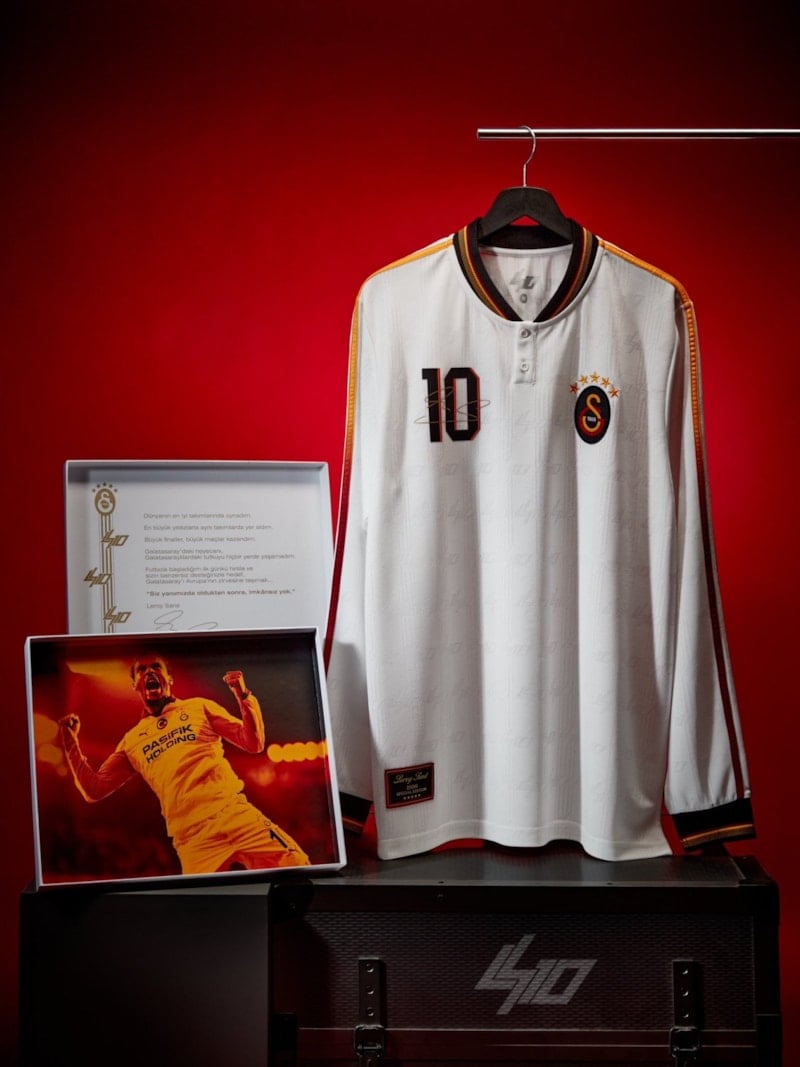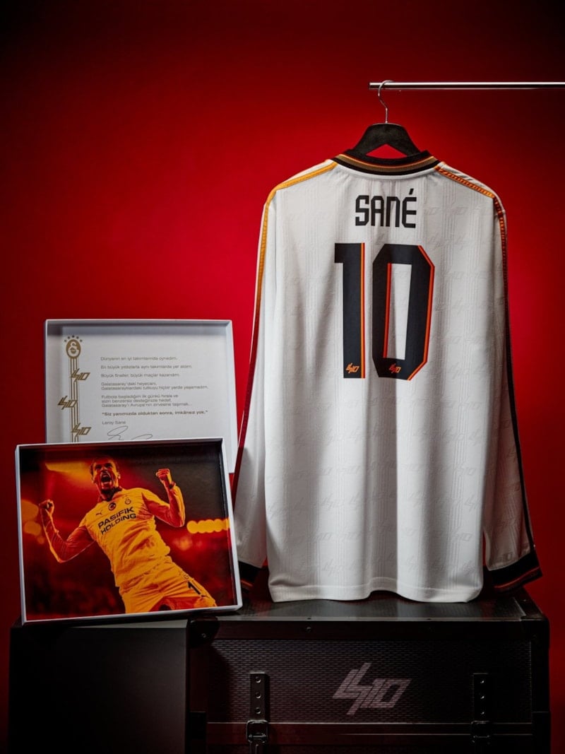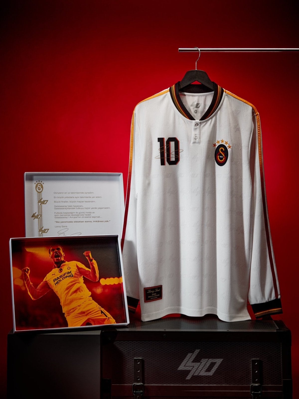 Hazırlanan özel kutuyla satışa çıkarılan beyaz 10 numaralı uzun kollu formanın önünde, 5 yıldızlı Galatasaray logosu ve Leroy Sane'nin imzası yer aldı.
