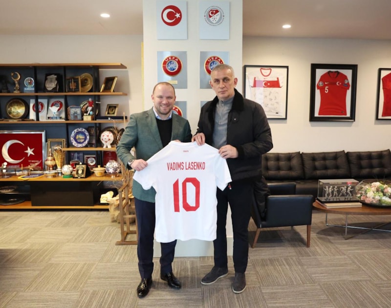 Letonya Futbol Federasyonu Başkanı Vadims Lasenko, Türkiye Futbol Federasyonu Başkanı İbrahim Ethem Hacıosmanoğlu ile fikir alışverişinde bulundu.