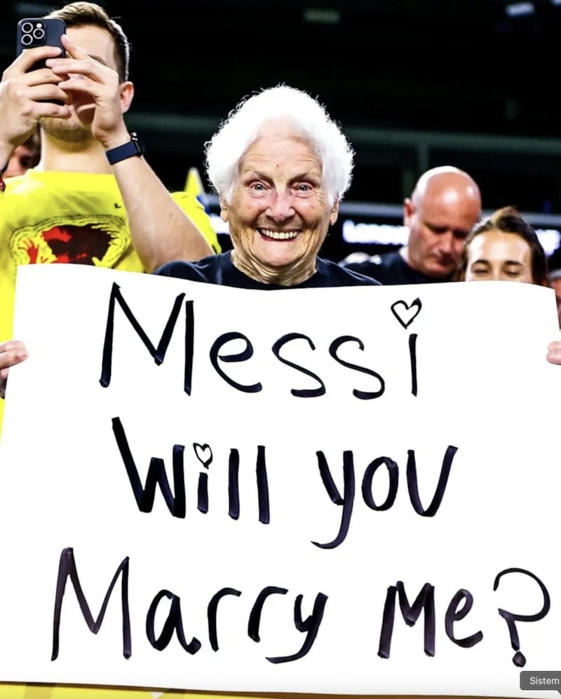 Tribündeki yaşlı kadın hayranı, Messi'ye evlenme teklif etti.
